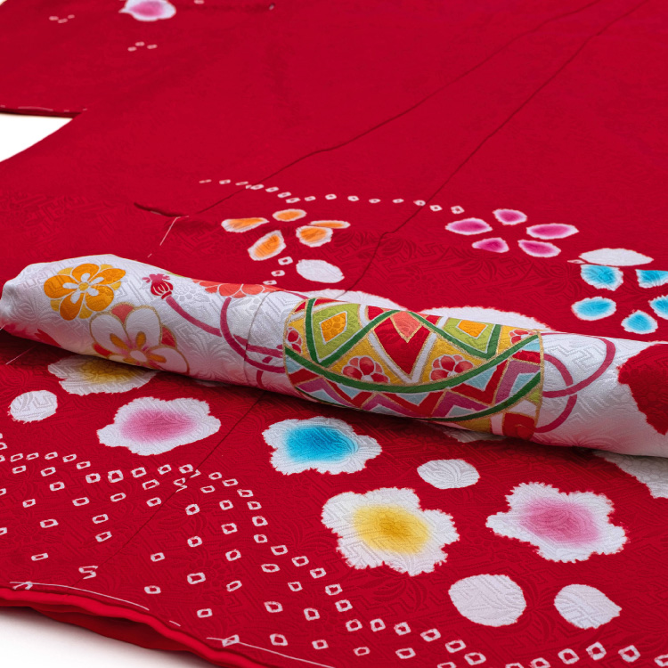七五三 着物 7歳 四つ身 正絹 赤 (yotsumi-00011)