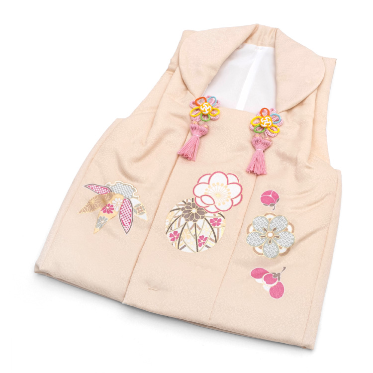 七五三 3歳 三歳 被布コート 単品 女の子用 しゃれっこ ベージュ 花柄 桜 毬 被布 3才 女児 販売 購入 お祝着